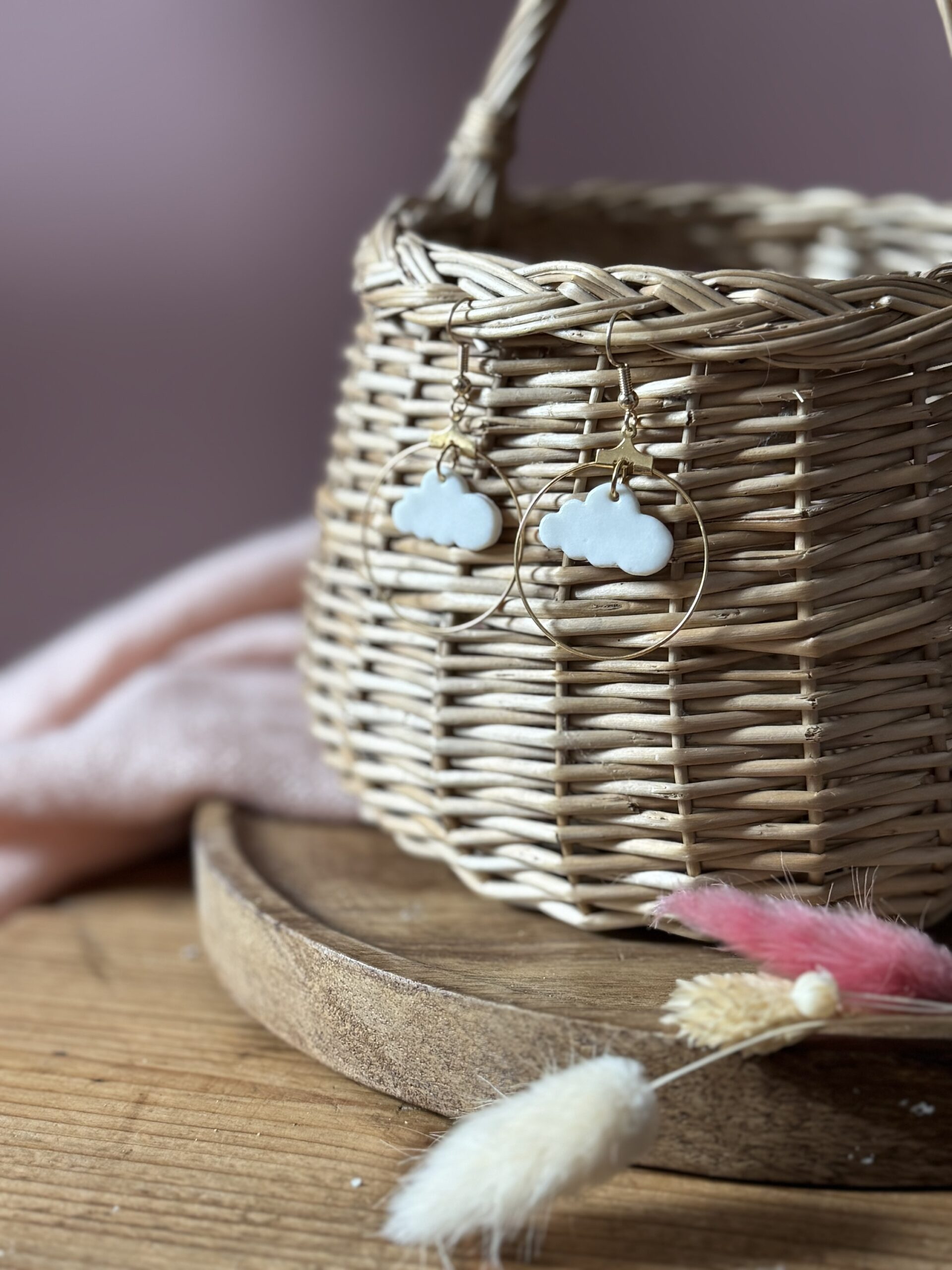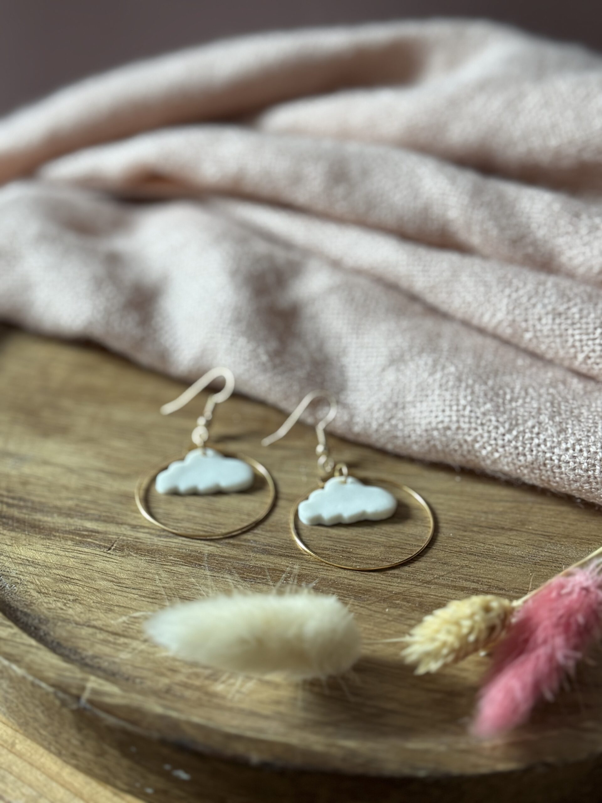| Matières | Porcelaine et crochés d'oreilles en laiton doré à l'or fin |