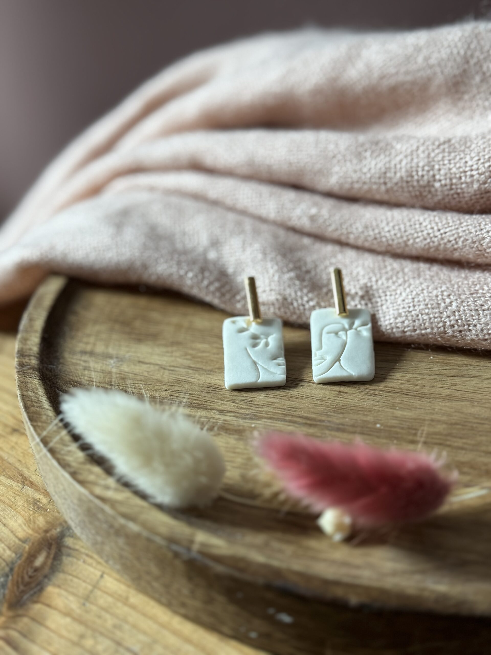 Boucles d’oreilles en porcelaine blanche.