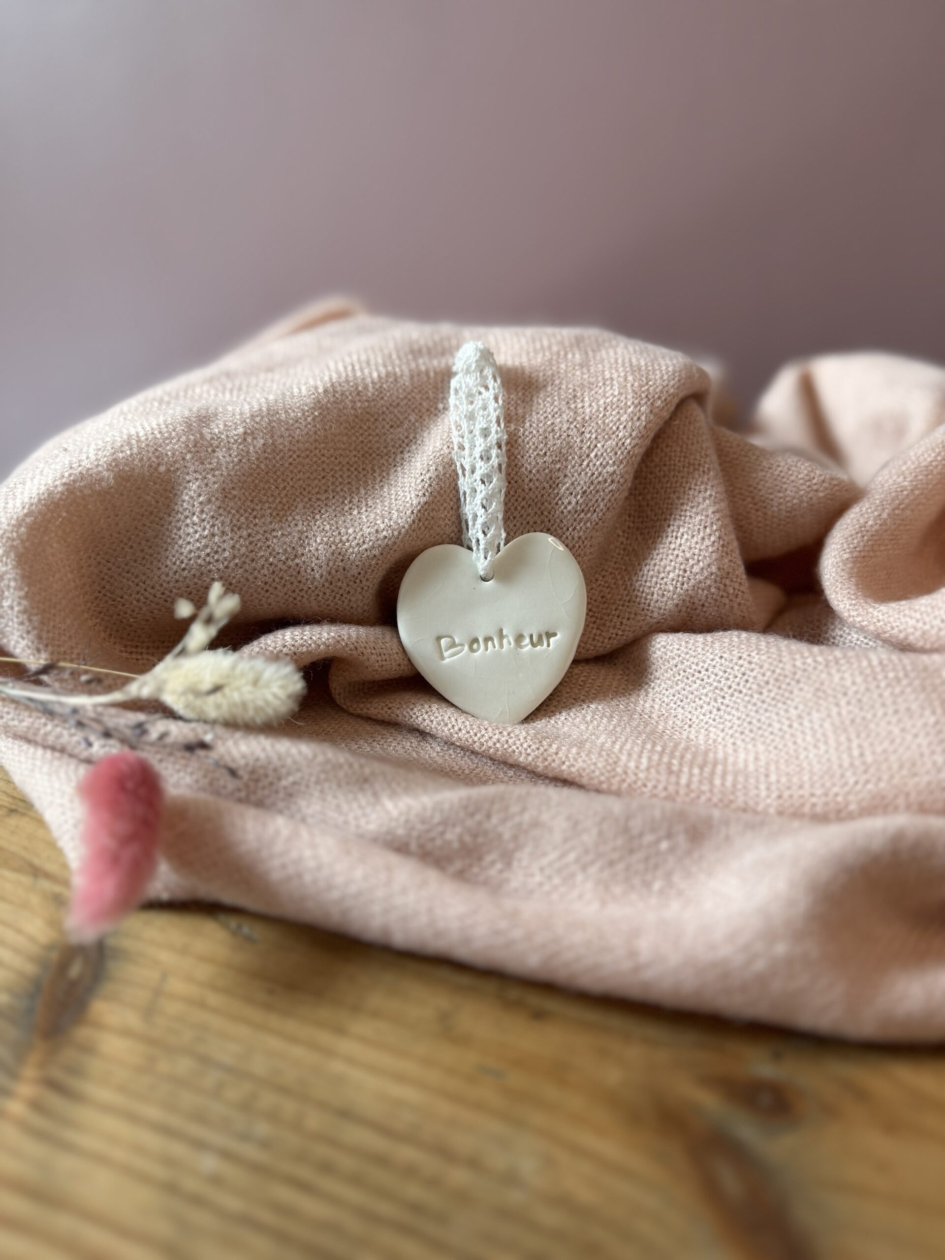 Un petit cœur en porcelaine entièrement façonné à la main, délicatement décoré d’un message plein de douceur.