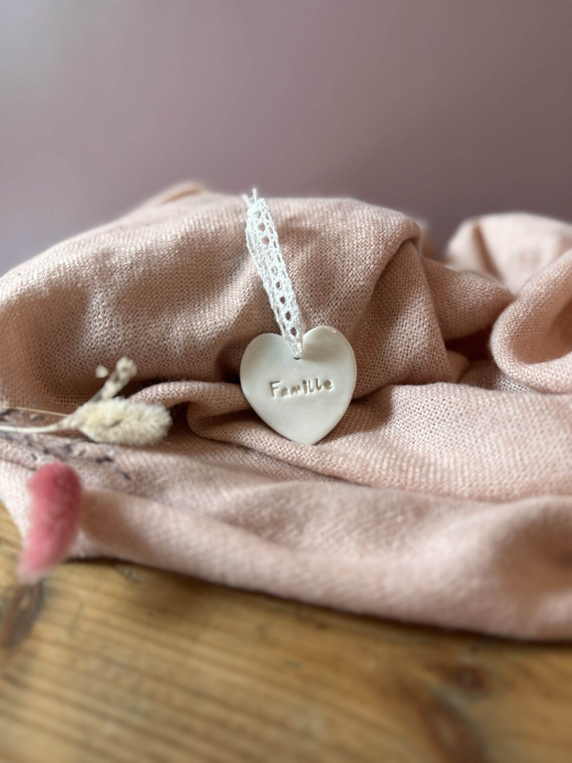 💛 Cœur en porcelaine – Famille