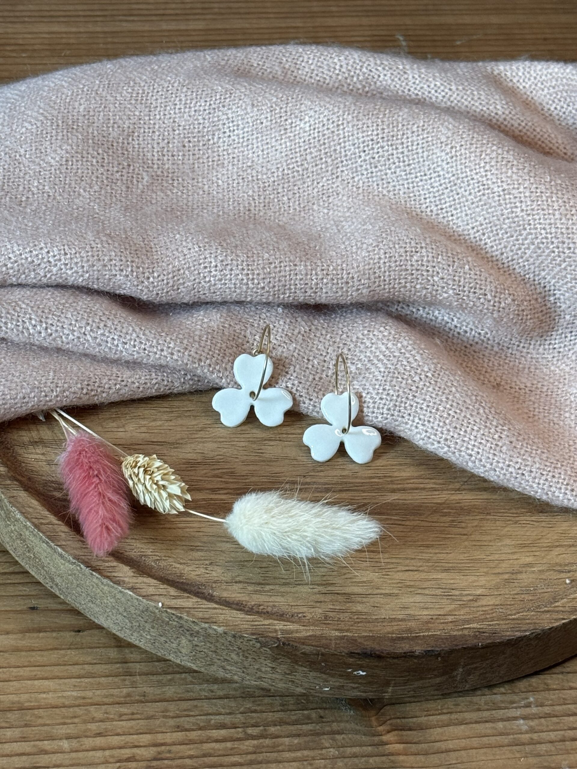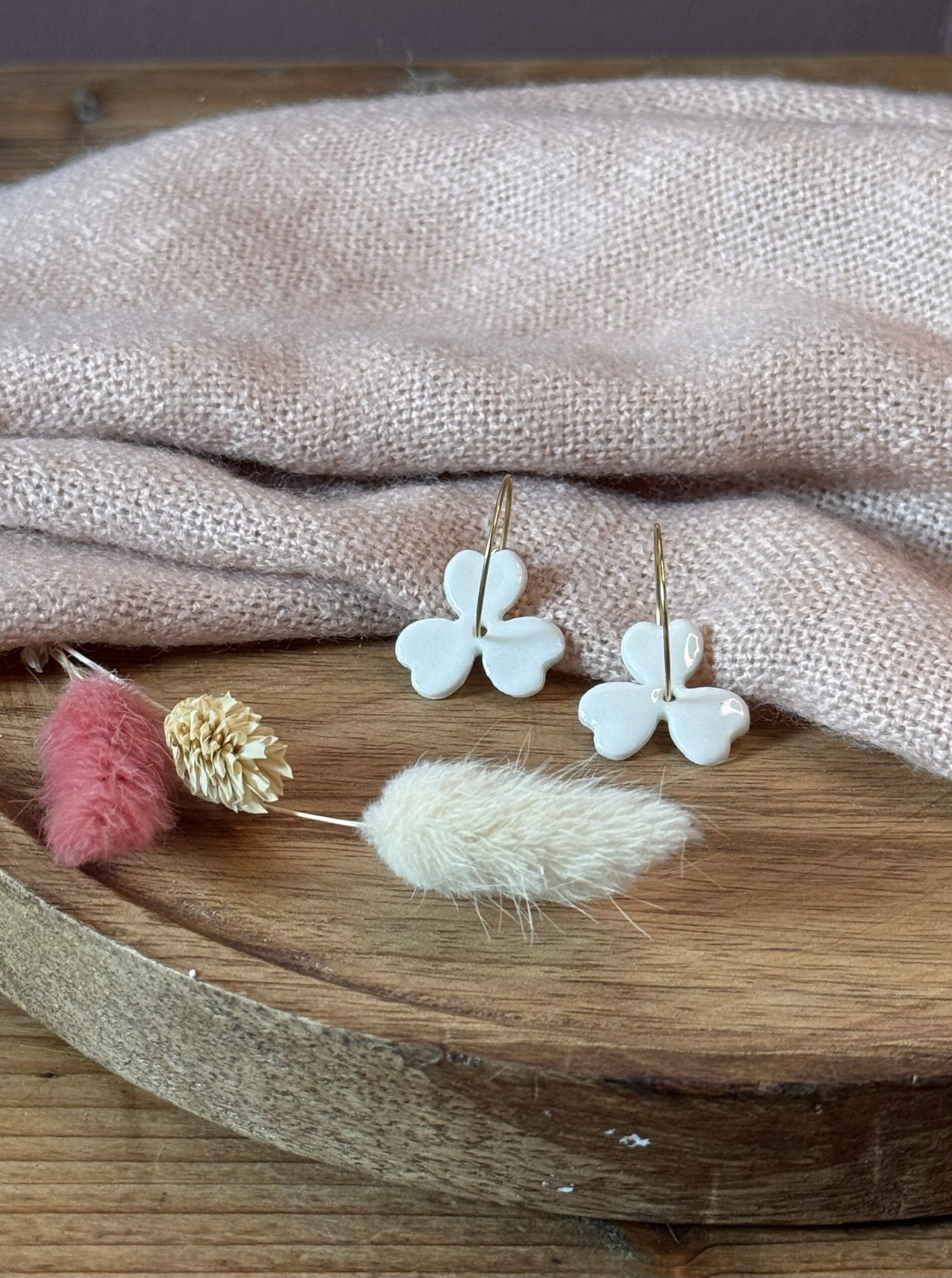 Boucles d’oreilles en porcelaine blanche.